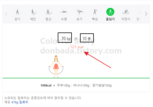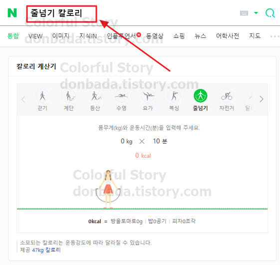 '줄넘기 칼로리'라고 쳐보겠습니다.