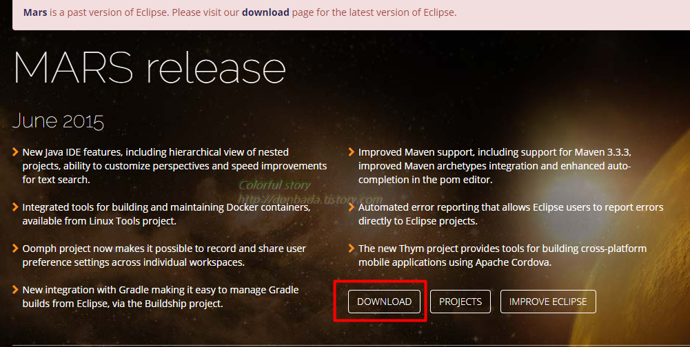 ▼ MARS 버전을 다운받을 수 있는 링크로 한번에 이동한 것을 보실 수 있습니다.