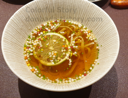 여름 한정판인 라임소바입니다. 향긋하고 식사의 마무리에 나왔는데 향긋하게 몇 젓가락 먹으니 기분이 좋더라고요. 이미 배가 부른 상태라서 더 먹기에는 힘들었지요.