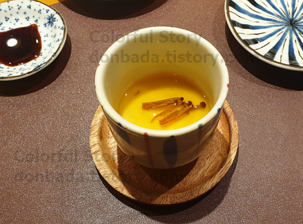개인적으로 오마카세 집에 가면 따뜻한 일본식 계란찜 차완무시를 먹는 것을 매우 좋아합니다. 어찌 되었건 스시는 찬 음식이라서 그런지 따뜻하게 속을 한 번 적셔주는 게 개인적으로 좋더라고요.