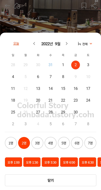 예약 시스템은 앱을 다운로드하고 나서 날짜를 선택하고 인원수와 시간대를 선택하면 됩니다.