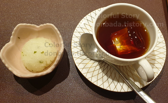 유자 샤베트와 더치커피가 나옵니다. 지금 사진으로 보면 커 보이는데요. 매우 작고 아담한 잔에 나와서 그냥 기분 좋게 원샷 때리면 됩니다.