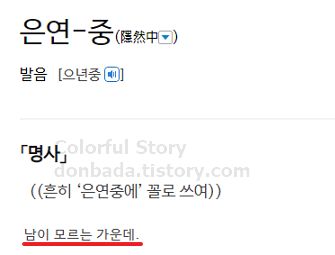 은연중 + 에 가 합쳐서 사용되는 말인데요. 은연중 뜻을 살펴보도록 하겠습니다.