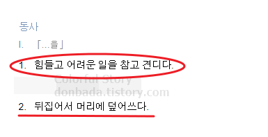 ① 힘들고 어려운 일을 참고 견디다