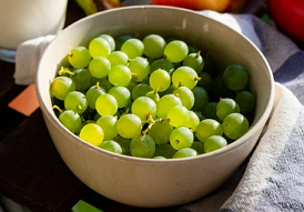 더 철저하게 포도알 구석구석 씻고자 한다면 포도알을 다 떼서 담갔다가 흐르는 물에 씻으세요.
