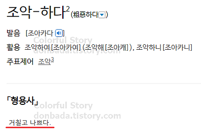 - 조악하다는 그 외에도 다양한 뜻이 존재하는 동음이의어로 한자에 따라서 그 뜻이 달라집니다.