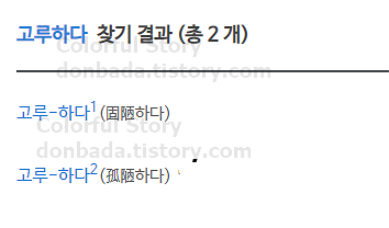 오늘은 고루하다에 대해 살펴보았는데요. 우리 표준국어대사전에는 2가지가 존재하지만 둘 다 거의 비슷한 뜻을 지녔으므로 결론적으로 '낡은 사상에 젖어 융통성이 없다' 정도로 정리해도 무방할 것 같습니다. 그럼 도움이 되었길 바랍니다.