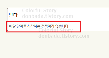 그 이유는 '맏다'는 '맡다'의 잘못으로, 아예 우리 국어사전에 존재하지 않는 단어입니다. 아래는 표준국어대사전에서 검색한 결과로 조회 결과가 나오지 않는 것을 알 수 있습니다.