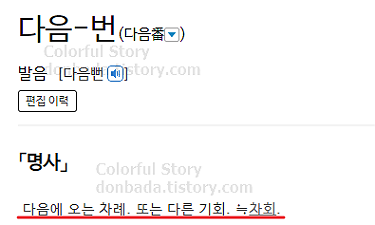▼ 표준국어대사전 '다음번'