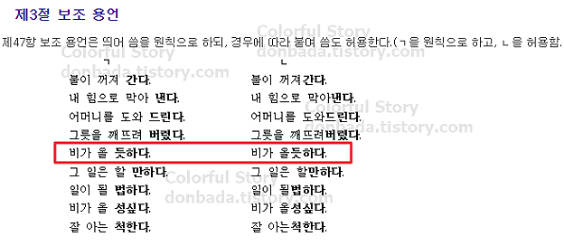 4. 비가 올 듯도 하다 vs 비가 올듯도하다